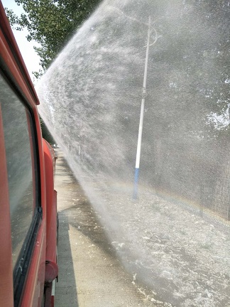 順義區李橋鎮連日預防楊柳絮引發火災出動35臺消防車進行濕化